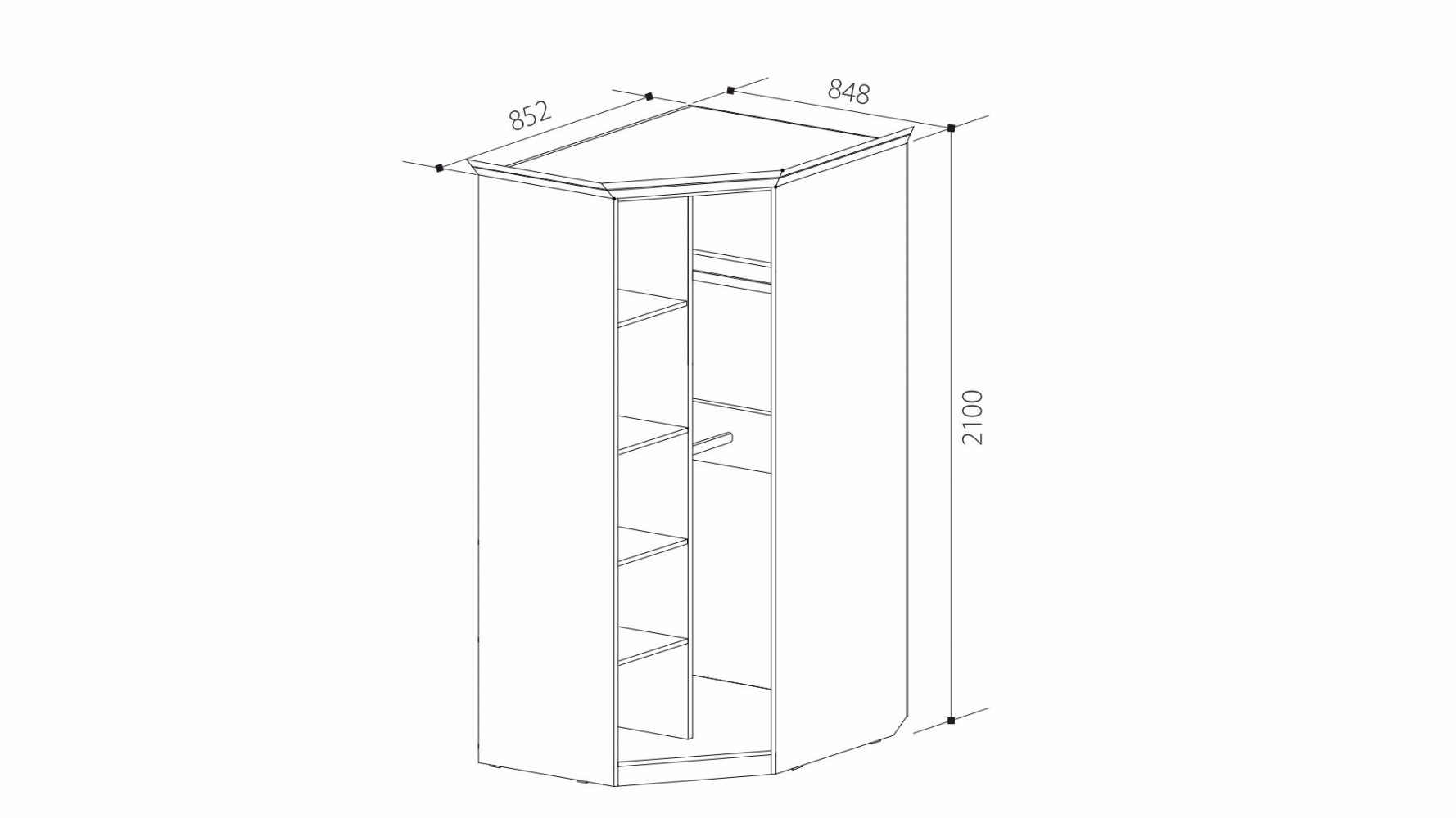 ДхВхШ: 848х2100х852 мм (размер указан без учёта карниза).