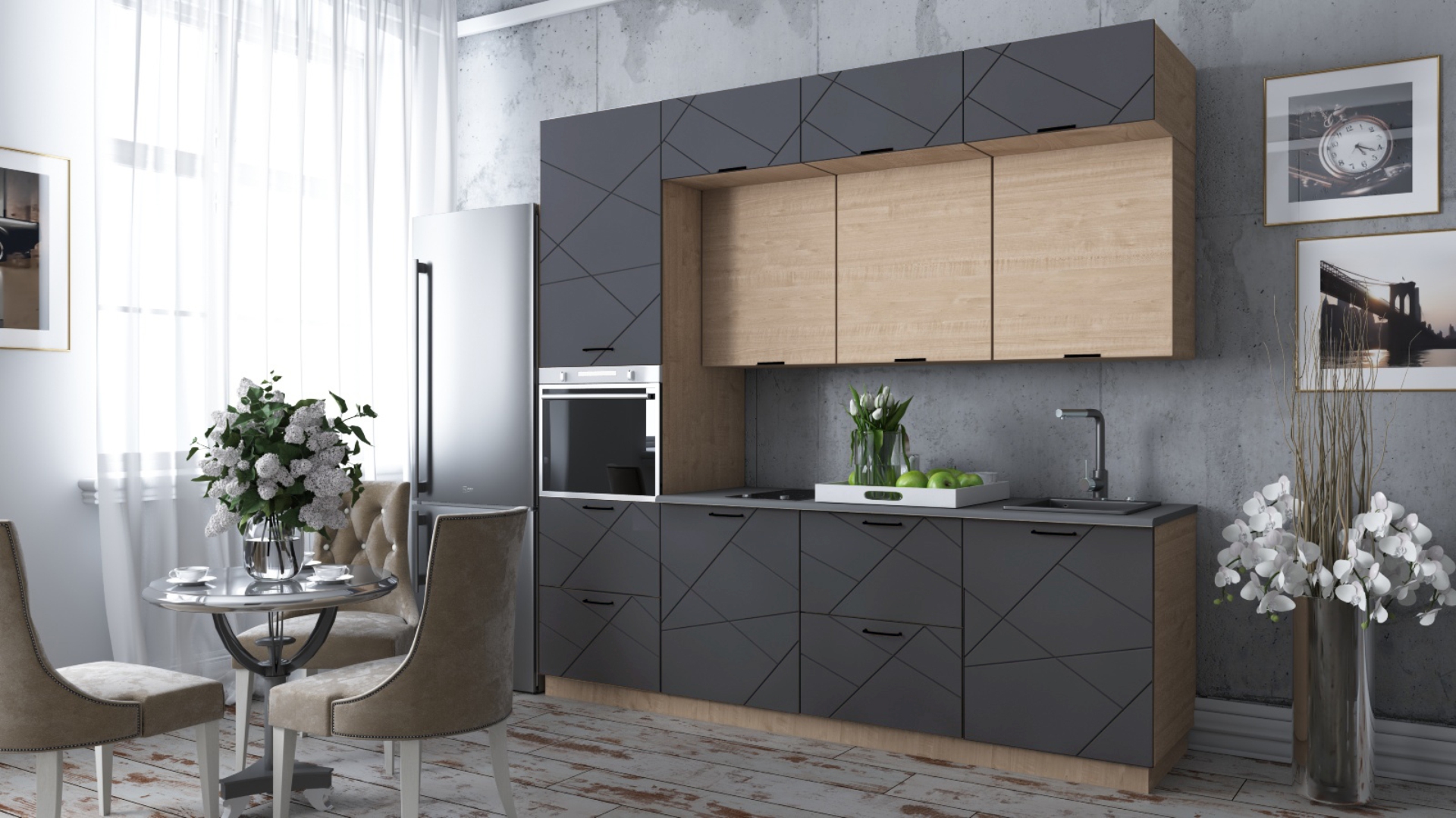 Цветовое решение представленное на сайте: фасад графит софт/корпус дуб ирландский.