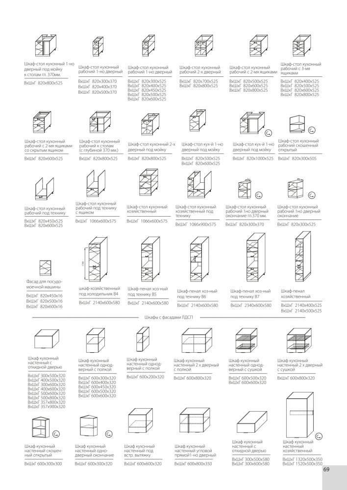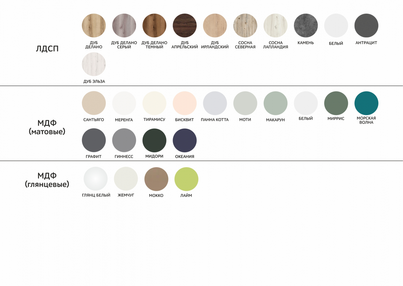 Возможное цветовое решение фасадов и корпуса ЛДСП — Таблица 1 ЛДСП.