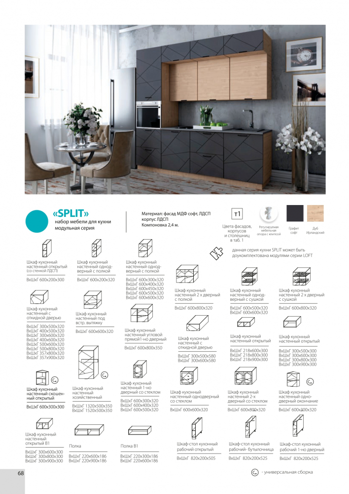 *Данная серия кухни SPLIT может быть доукомплектована модулями серии LOFT.