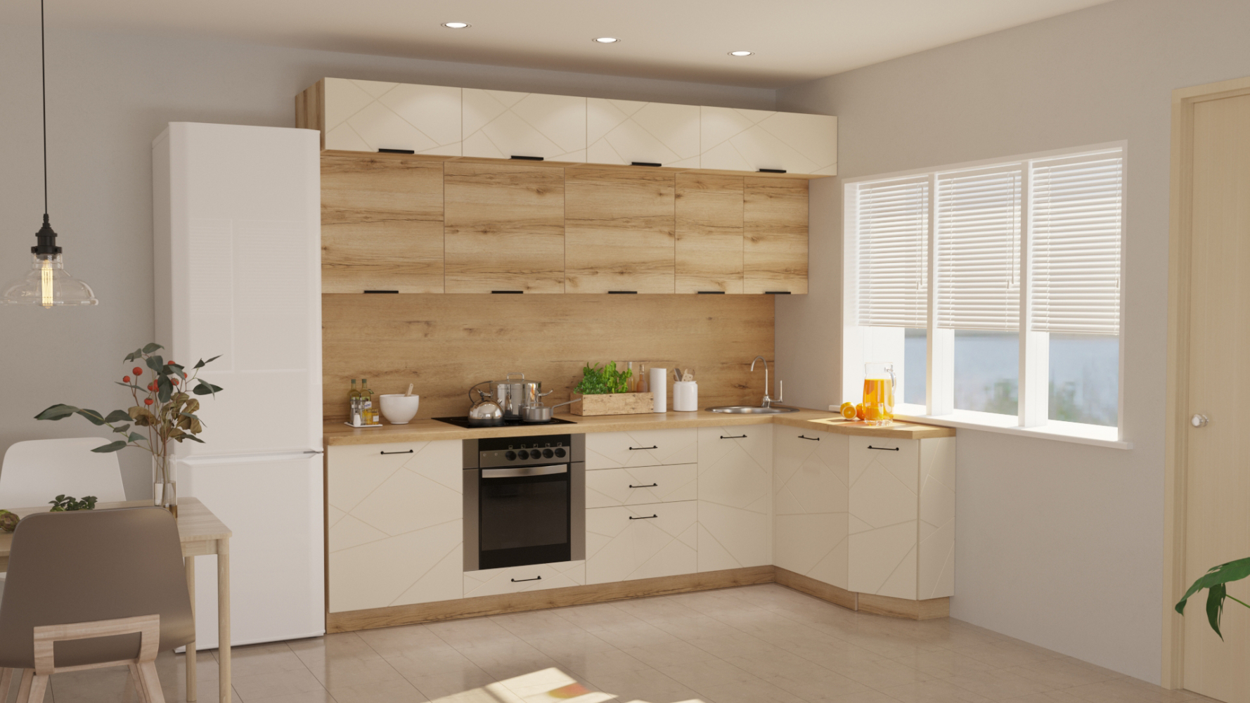 Создать проект в 3D конструкторе: https://maribel-mebel.ru/kitchen-designer/