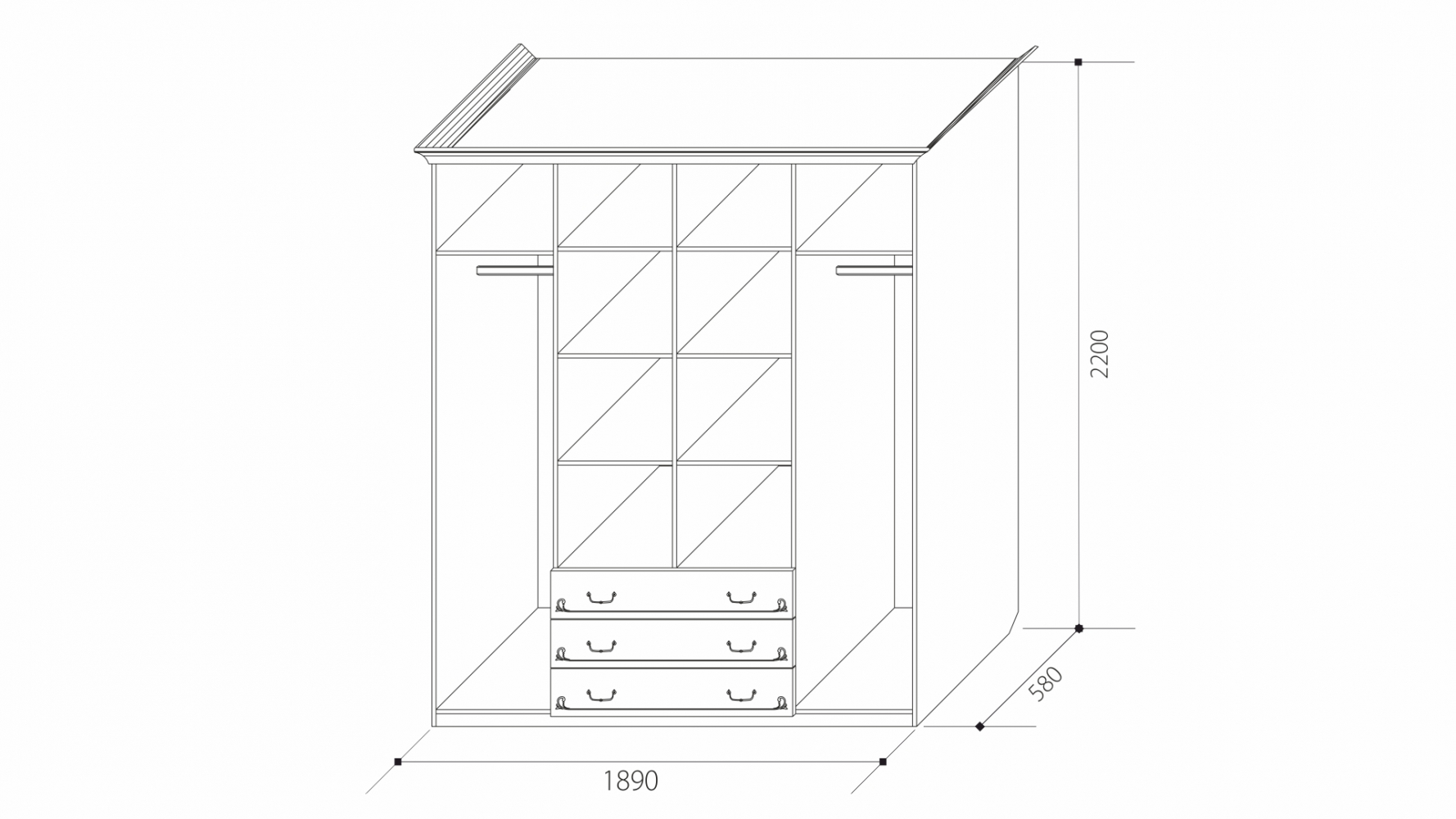 ДхВхШ: 1890х2200х580 мм.